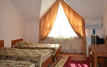 Комфортные номера класса полулюкс или люкс (1-3 местные). В номерах: кондиционеры, телевизор, холодильник, санузел, WiFi, косметические принадлежности