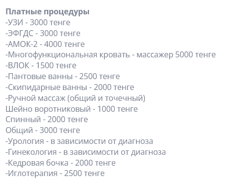 В «Керуен» работают высококвалифицированные врачи: гастроэнтеролог, терапевт, окулист, гинеколог, уролог и др. Лечение проводится после осмотра врача, и согласно их назначению